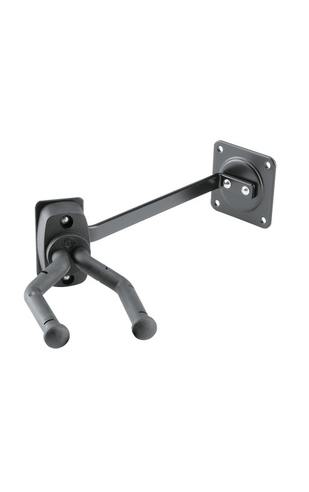 Mit kunststoffbezogenen Bügeln, die sich selbstklemmend jeder Gitarre beim Einhängen anpassen. Verchromte anschraubbare Wandbefestigung, die durch einfachen Umbau beidseitig verwendbar ist.