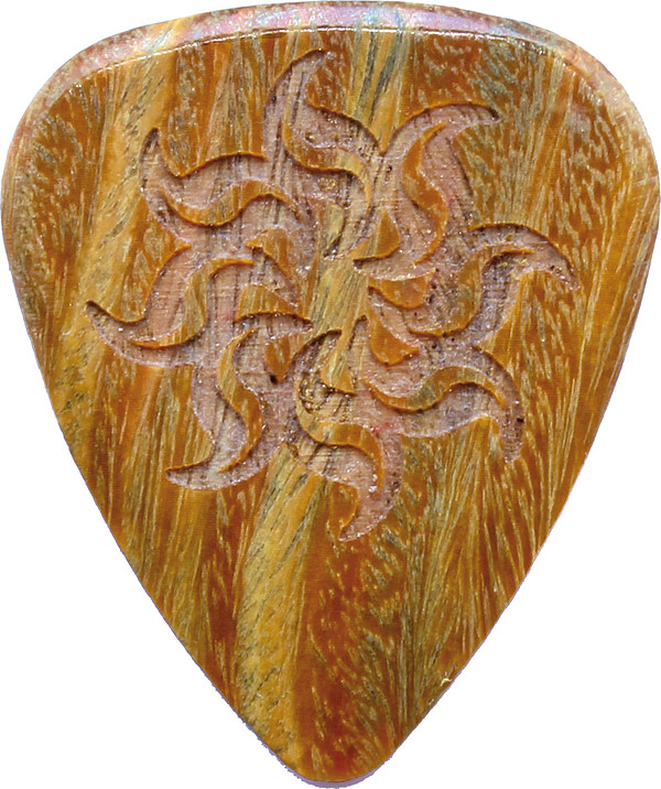 Das Motiv ist auf einer Seite des Picks mit Laser eingraviert