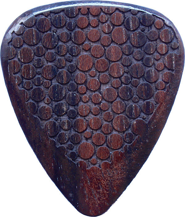 Das Motiv ist auf einer Seite des Picks mit Laser eingraviert