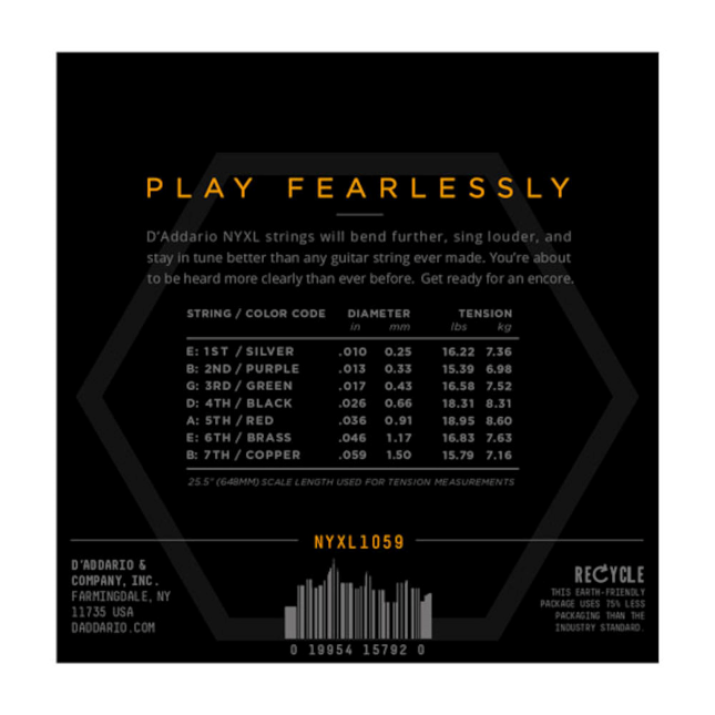 Die NYXL-Saiten bestehen aus der exklusiven in New York hergestellten D'Addario Stahllegierung mit hohem Kohlenstoffanteil, die eine bisher unerreichte Festigkeit bietet - Spiel ohne Angst