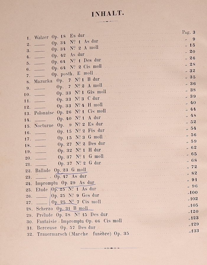 Sammlung der beliebtesten Pianofortewerke von Fr. Chopin. Kritisch veridirt und mit Fingersatz versehen vonHermann Scholz.