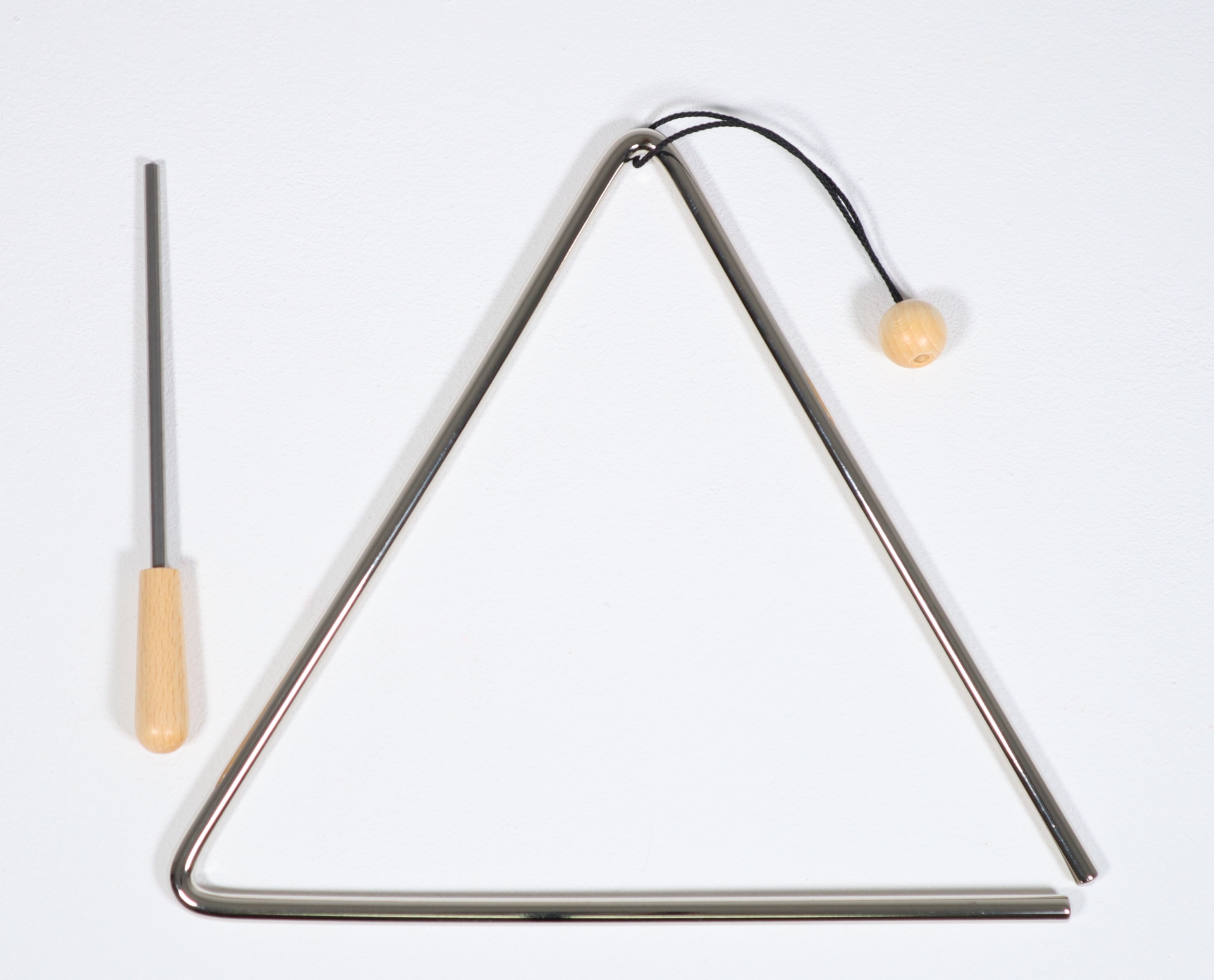Triangel 25cm ,8mm Tonstahl vernickelt mit Trageschlaufe und Schlägel mit Holzgriff