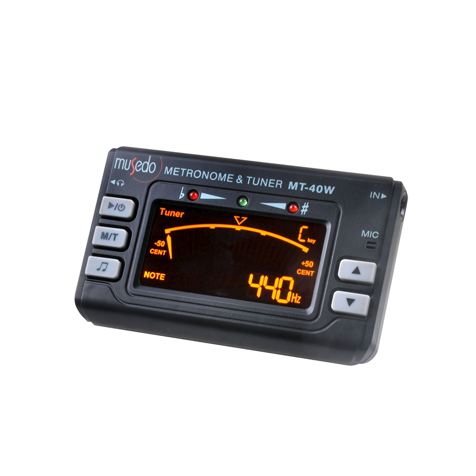 3 in 1! Das MT-40W vereint Metronom, chromatisches Stimmgerät und Klanggenerator in einem kompakten Paket. Das riesige Display zeigt alle Parameter an, die Sie über die großen Bedientasten einstellen können. Schließen Sie Ihr elektrisches Instrument, einen Tonabnehmer für Ihr akustisches, Blas- oder Blechblasinstrument an die 6,3-mm-Eingangsbuchse an oder nutzen Sie das eingebaute Mikrofon. Mit all diesen wichtigen Funktionen ist das MT-40W kaum zu schlagen!